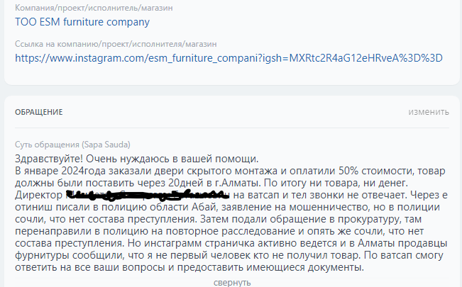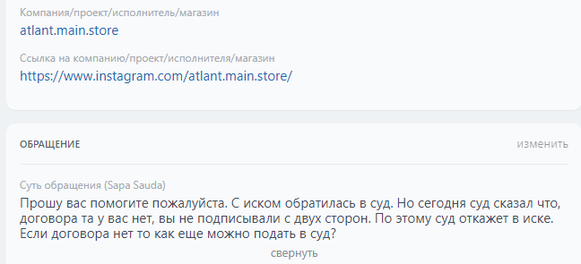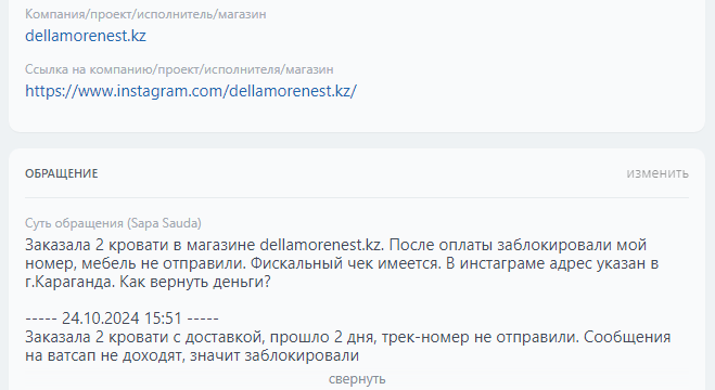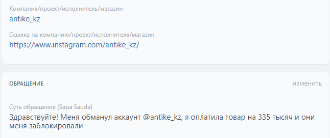 Аккаунтқа шағымдар | бар |