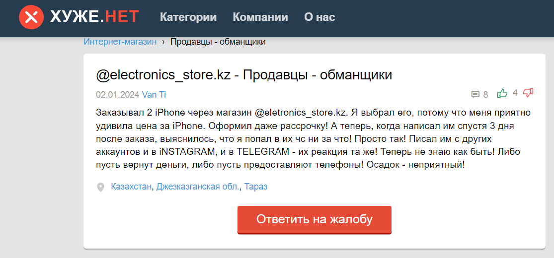 Бұл интернет-сатушыда жосықсыздық белгілері бар.
