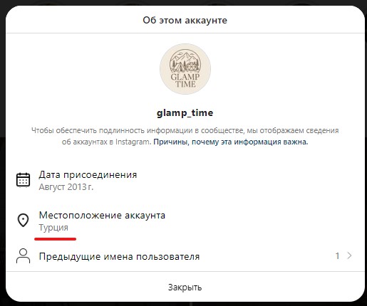 Местоположение аккаунта закрыто