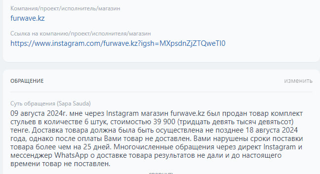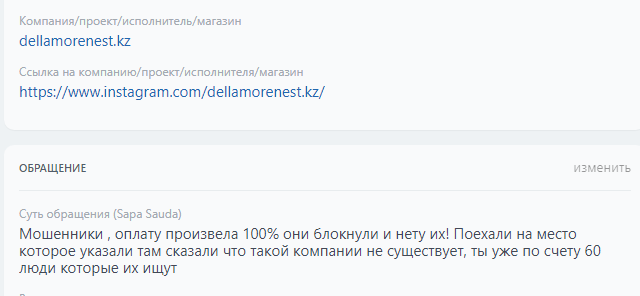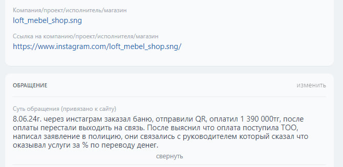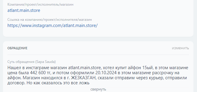 Аккаунтқа шағымдар | бар |
