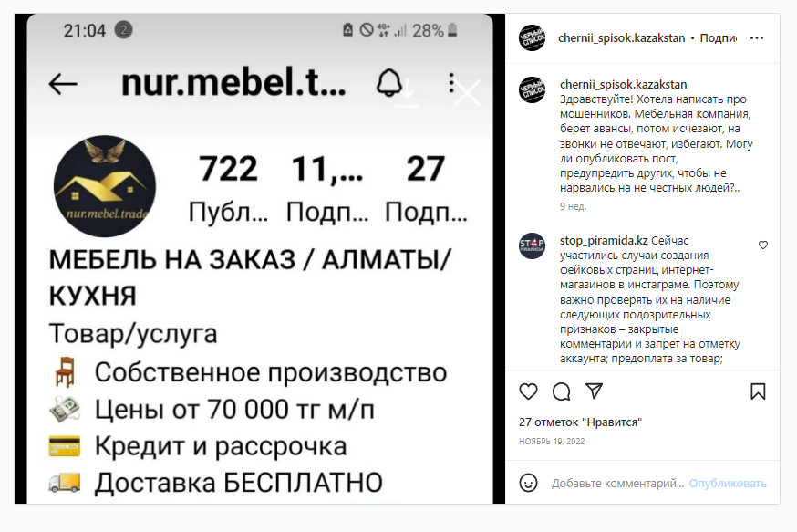 осы сайтта ақпарат жарияланған кезде дүкеннің инстаграм-аккаунты жойылды немесе атауы өзгертілді