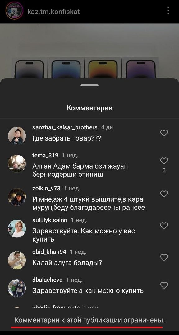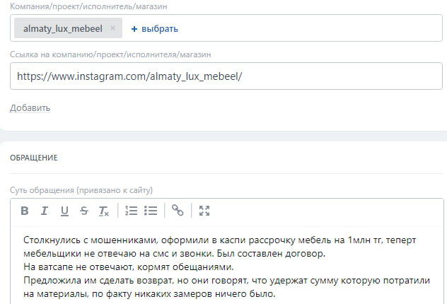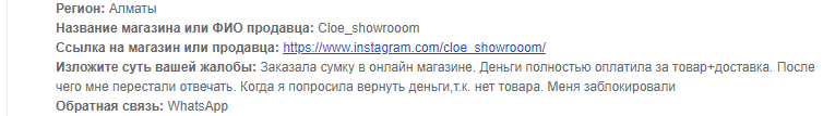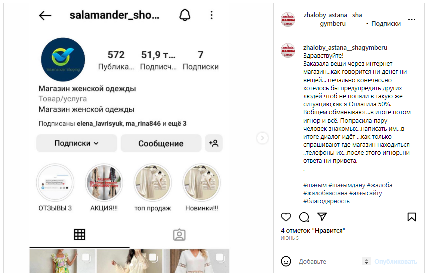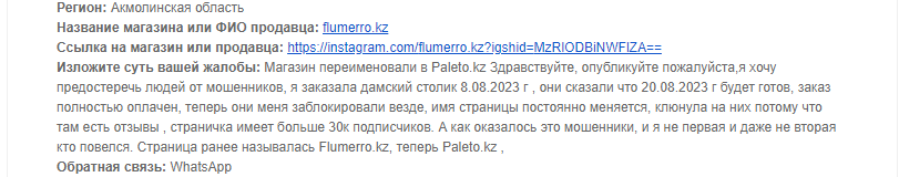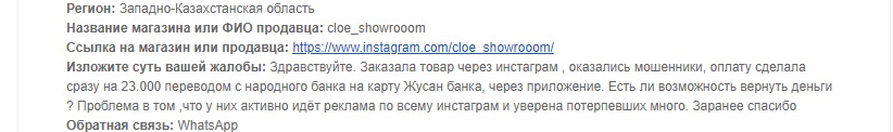 Аккаунтқа шағымдар | бар |