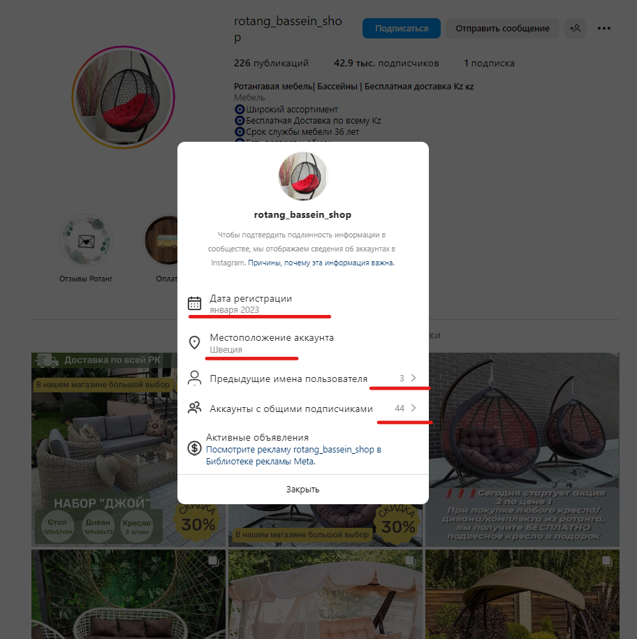 Аккаунттың орналасқан жері | Швеция |