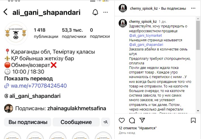 Бұл интернет-сатушыда жосықсыздық белгілері бар.